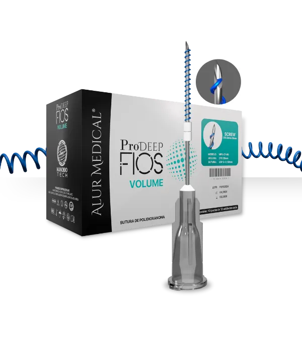 PRODEEP FIOS VOLUME – SCREW é um fio liso de alta performance com excelente desempenho como bioestimulador de colágeno, tem como característica principal a sua forma em ESPIRAL/PARAFUSO, encontrando-se enrolado ao redor da agulha para permitir a inserção de um fio mais longo permitindo assim a ampliação da superfície de contato do fio com a pele.